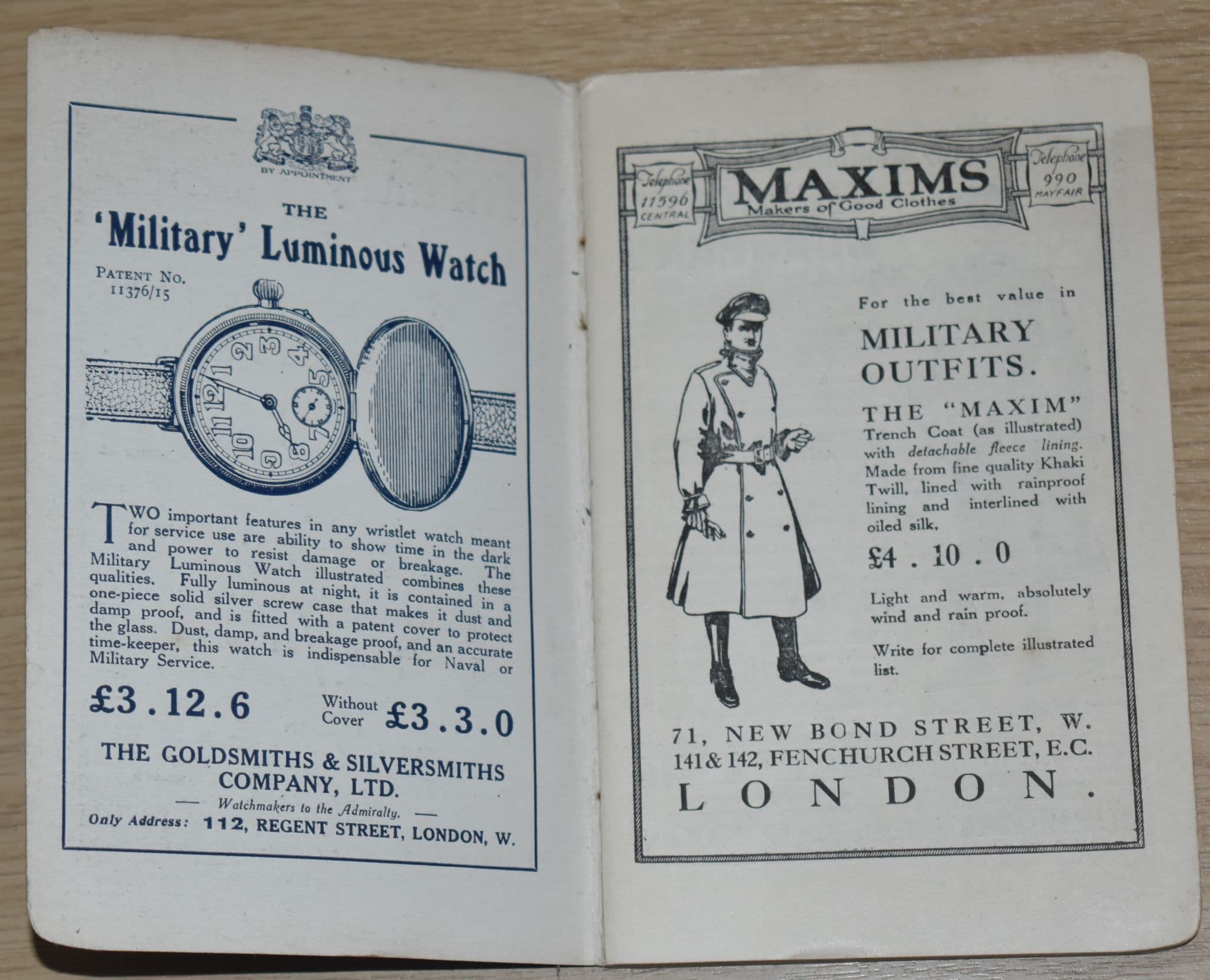 Published by Harrison and Sons, Printers in Ordinary to His Majesty Military Printers, Publishers and Stationers, St Martins Lane WC. No date of publication given, but thought to be 1916.