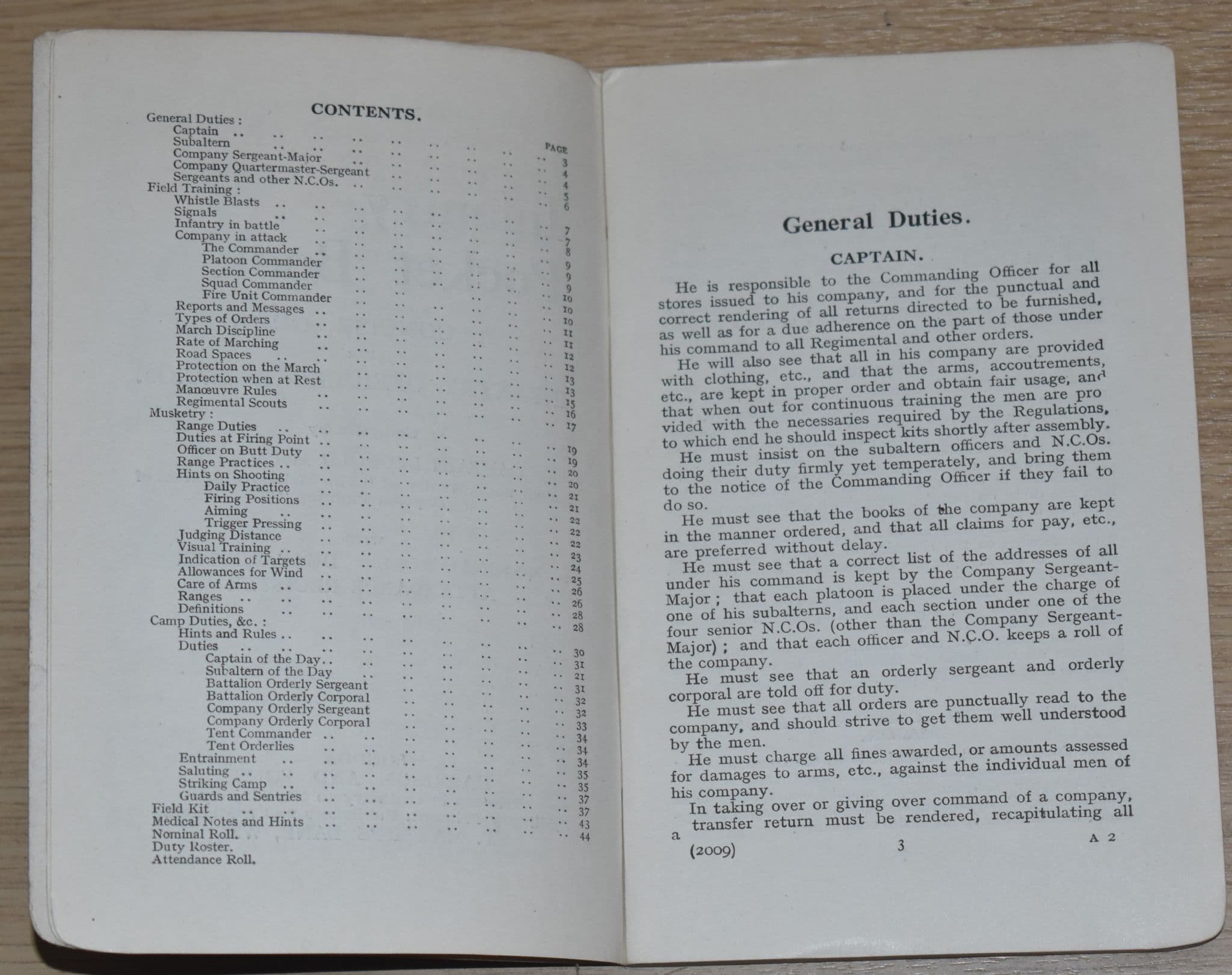 Small Booklet - c.10cm by 16cm. 45 pages, with an additional 18 pages (unpaginated) of Duty Roster and Nominal Roll, presumably to be filled in by the owner (they havn't been, and are all unmarked).
