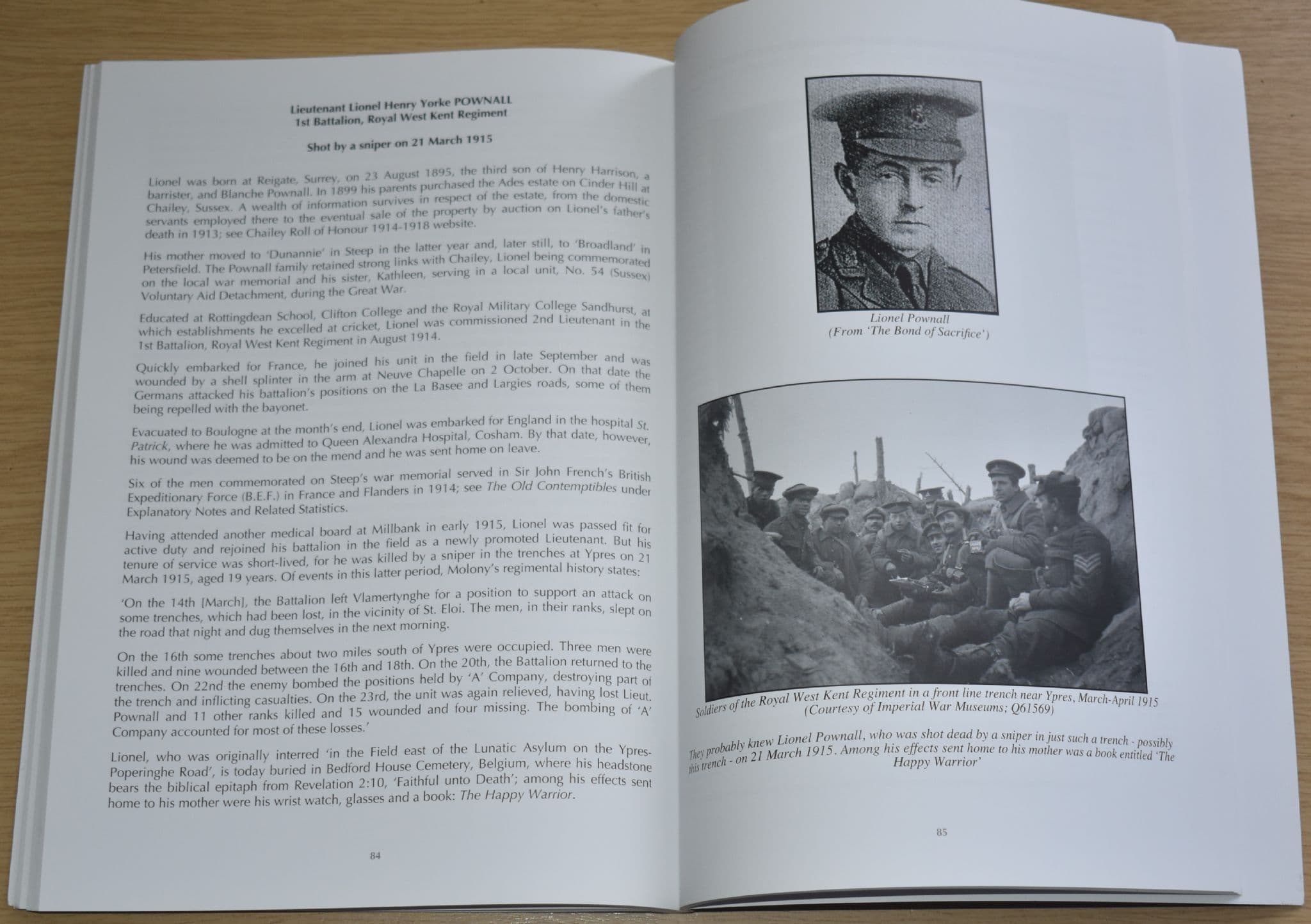 A multitude of military reference sources aside, David quotes some illuminating extracts from the columns of the now defunct Hants & Sussex News. In respect of the non-commissioned ranks this is particularly informative for, as is well-known, the majority of their service records were destroyed by enemy action in the last war. He also acknowledges the work of a group of local volunteers who have been transferring church and school records to an accessible database...