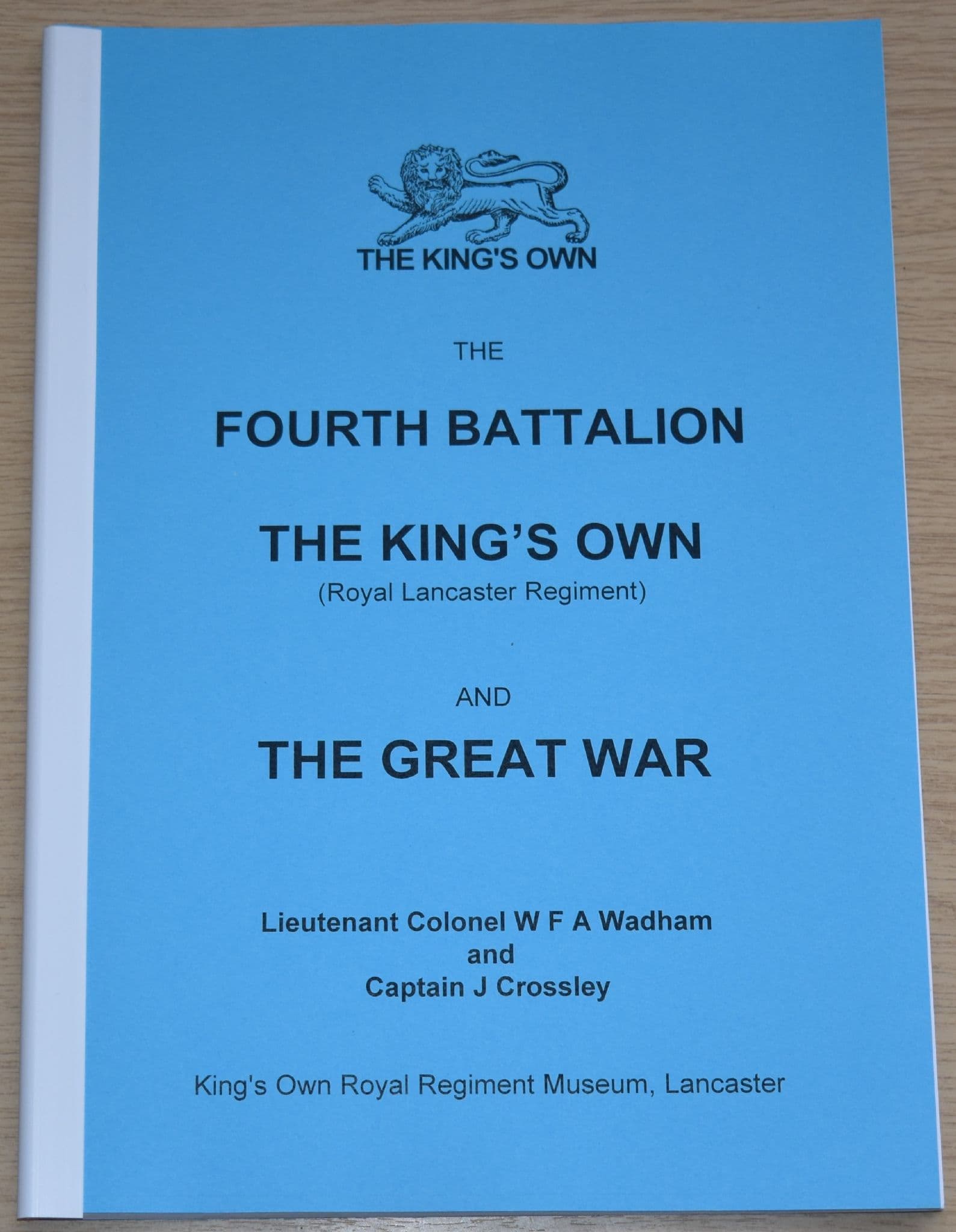 Full title: 'The Fourth Battalion the King's Own (Royal Lancaster Regiment) and the Great War, by Lieutenant Colonel Wadham and Captain Crossley'